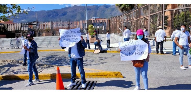 Diversos contingentes protestaban esta mañana en las inmediaciones del ex palacio de gobierno de Guerrero, previo al evento que encabezará el presidente de la república, Andrés Manuel López Obrador, junto con la gobernadora Evelyn Salgado Pineda.