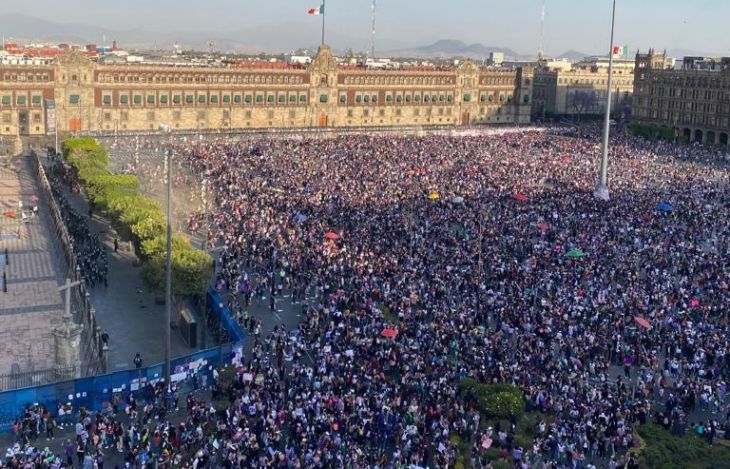 En las inmediaciones del Ángel de la Independencia, cientos de mujeres se reunieron para iniciar el recorrido hacia la plancha del Zócalo capitalino. Con consignas como: "El que no brinque es macho", "Señor, señora no sea indiferente, se mata a las mujeres en la cara de la gente", los grupos comenzaron el despliegue sobre el Paseo de la Reforma.