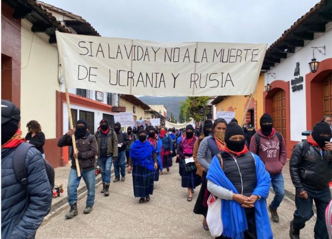 En su comunicado previo, el EZLN rechazó la guerra y dijo que "no es sólo en Ucrania. También en Palestina, el Kurdistán, Siria, el pueblo Mapuche, los pueblos originarios en todo el planeta, y tantos y tantos procesos libertarios que son agredidos, perseguidos, asesinados, silenciados, distorsionados".