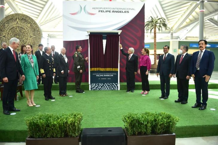 En menos de tres años, se construyeron tres pistas, una terminal, una Base Aérea, Torre de Control, terminales de carga, hangares, una ciudad para cerca de 15 mil elementos del Ejército, con unidad habitacional, escuelas, museos, hoteles, centro comercial, calles, avenidas; “una verdadera hazaña que, en pocos meses, estará conectada por un tren a la Ciudad de México”, señaló.