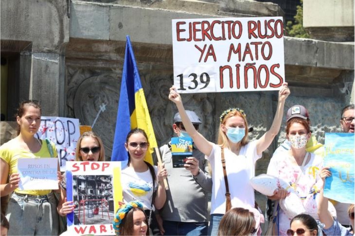 No corearon consigna alguna simplemente manifestaron que quería hacer visible la tragedia que viven en su país y que se detenga la invasión por parte de Rusia.
