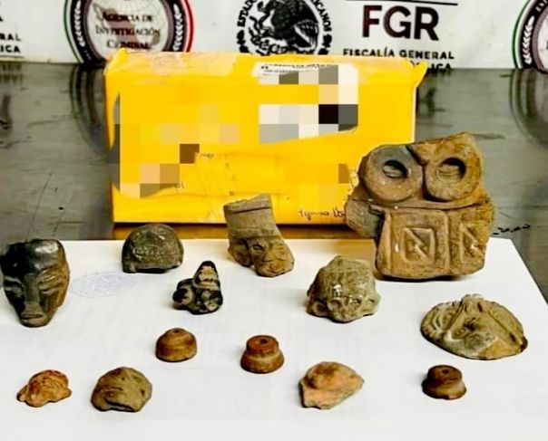 Un lote de 14 piezas arqueológicas de la cultura teotihuacana fue confiscado en el servicio de paquetería de Correos de México de la ciudad fronteriza de Tijuana. Se trata de máscaras de barro y obsidiana, además de basamentos y objetos.