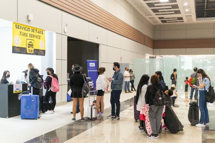 Son las 10:30 de la mañana del sábado y la terminal luce tranquila. Conseguir un taxi en este momento es fácil, pero no lo será tanto cuando lleguen los vuelos procedentes de Guadalajara y Tijuana, porque entonces no se sabe si habrá vehículos para todos los que lo requieran.