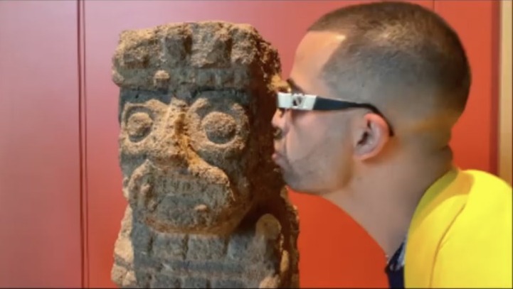 El artista fue grabado besando y lamiendo las piezas arqueológicas, material que después fue compartido en redes sociales.
