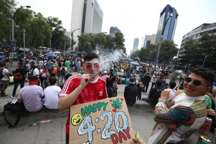 En un ambiente festivo y cultural, cientos de consumidores de cannabis se reunieron en el parque Luis Pasteur, contiguo al Senado de la República, para fumar la hierba en el marco el Día Mundial de la Liberación de la Mariguana.