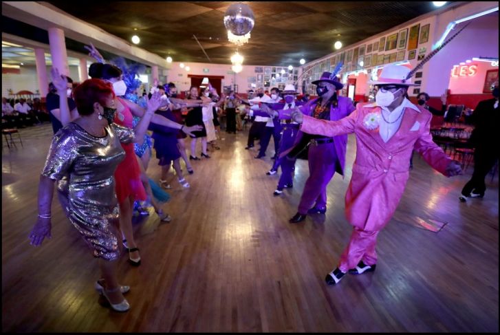 En el centro del recinto cada vez hay menos espacio entre parejas que no dejan de bailar, aprovechando que desde marzo de 2020, el salón cerró, igual que todos los recintos de entretenimiento.
