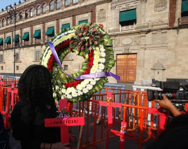 Las manifestantes llevaron coronas y cruces rosas, que depositaron frente a Palacio Nacional.