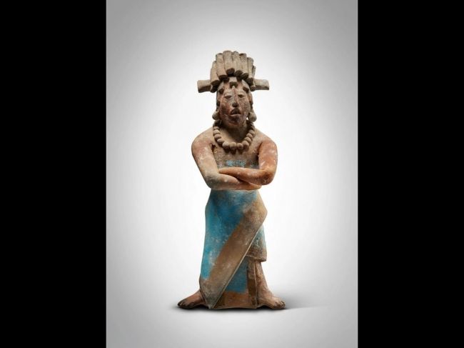 Se trata de una figura “de pie, en una postura orgullosa, con los brazos cruzados frente a él, este señor lleva los atributos propios de su rango: una elaborada diadema de filete, orejeras, collar y un largo taparrabos que conserva gran parte de su hermoso pigmento azul maya. Su nariz tiene el puente alto y arqueado que era el ideal maya”, consigna la página de la empresa.