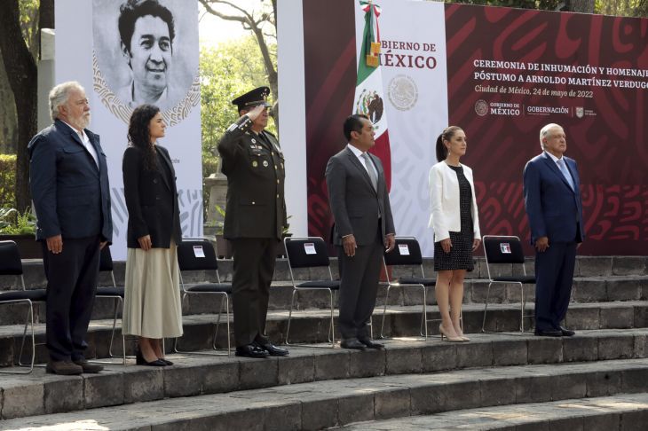 “En la vida y obra de Arnoldo, unidos a una profunda y creativa inteligencia, estuvieron siempre presentes el apego a los principios y la honradez. Hoy se quedan aquí, en lo que se considera el panteón más alto de la Patria, los restos mortales de Arnoldo Martínez Verdugo; a nosotros nos toca mantener vivo su espíritu y su pensamiento”, remarcó conmovida su compañera de vida.