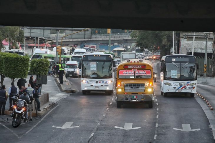 En los momentos de mayor afluencia de vehículos y demanda de transporte, un grupo de microbuseros impidió el paso de vehículos en el cruce de Miramontes y Taxqueña, además colocó una unidad, lo que dificultó la circulación.