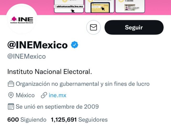 “La cuenta oficial del @INEMexico en Twitter se encuentra momentáneamente bloqueada por un tema de configuración en la fecha de creación del perfil. En ningún momento se ha puesto en riesgo la integridad de la cuenta. Estamos revisando los requisitos para la reactivación”, dijo desde su cuenta personal de esta misma red social.
