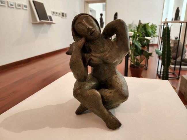 La exposición Geles Cabrera: Museo Escultórico, abierta hasta el 30 de julio, está compuesta de 50 piezas que muestran el interés de la artista por el cuerpo humano, creadas a lo largo de cuatro décadas, en las que experimentó con roca volcánica, bronce, terracota, papel maché y plexiglás moldeado.