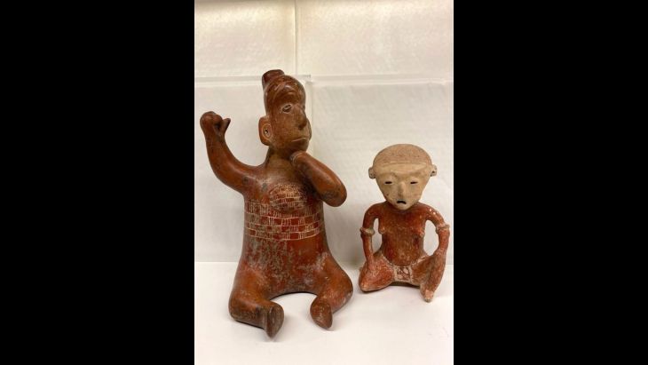 “Como parte del proceso, la Secretaría de Cultura del gobierno de México instruyó al Instituto Nacional de Antropología e Historia (INAH) la realización del análisis de ambas y se dictaminó que son originarias de la tradición cultural de Tumbas del Tiro, la cual se desarrolló entre los años 300 a.C. al 600 d.C. en el occidente de México”, agregó el boletín.
