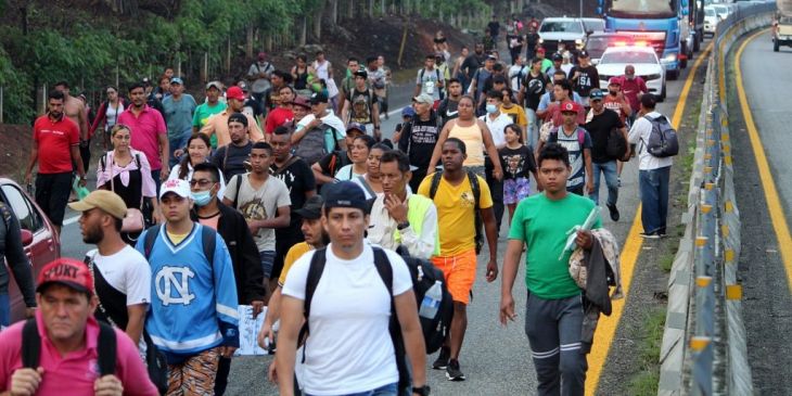 La caravana de migrantes centroamericanos y sudamericanos que salió el jueves de la Central de Autobuses de Monterrey, rumbo a Coahuila con el fin de cruzar a Estados Unidos, llegó al municipio de Mina e hizo un alto en el camino, para descansar, tomar agua y alimentos.