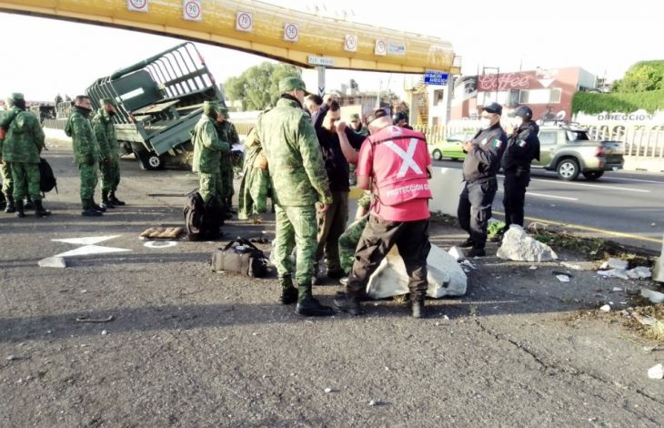 Tres elementos del Ejército mexicano resultaron lesionados en el accidente de un camión de transporte de personal, la mañana de este lunes en la autopista México-Puebla, informó Protección Civil del Estado de México (PCEDOMEX).