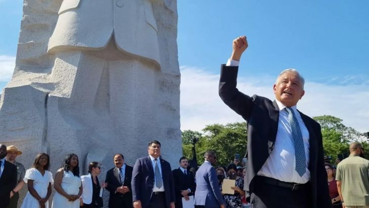Los pensados homenajes que López obrador pretendía rendir al ex presidente Franklin D. Roosevelt y a Luther King, al pie de sus memoriales ubicados cerca de la Casa Blanca, transmutaron a un masivo acto de apoyo al presidente.