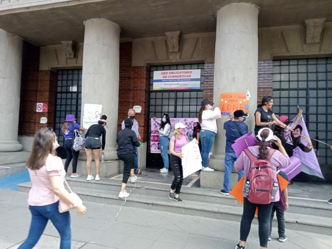 Durante la protesta el grupo de personas se concentró frente al Palacio municipal de Tlalnepantla, donde pegaron cartulinas con sus consignas de justicia, pugnaron por conocer la verdad y exigieron un respaldo efectivo, no simulado de apoyo a las mujeres víctimas de violencia.