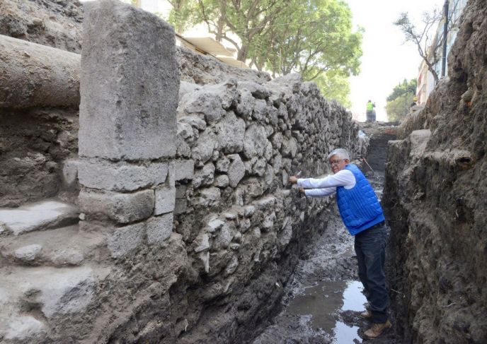 El muro novohispano “se halló en buen estado de preservación. Se detectó a 60 centímetros de la superficie y mantiene poco más de un metro de altura; se salvó de la destrucción gracias a los durmientes del tranvía que cruzó por esa vialidad, de finales del siglo XIX a inicios de la década de 1970, lo que impidió que otras obras afectaran el subsuelo”.
