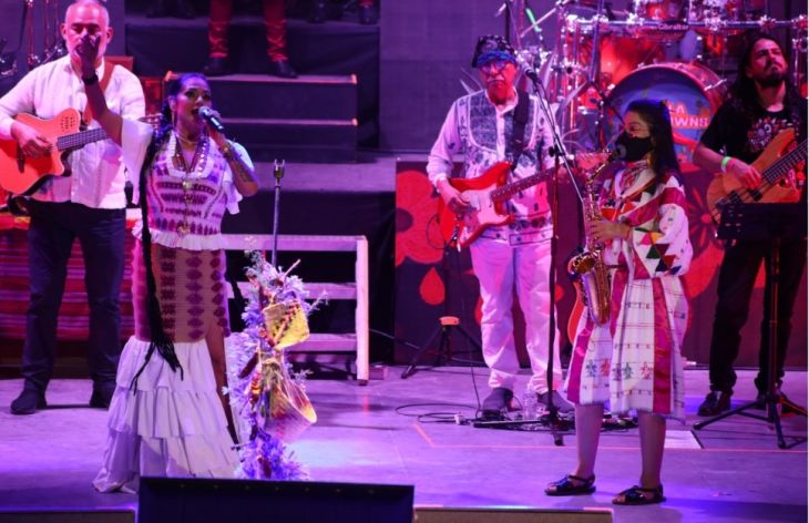 Tras esto interpretó La llorona, esto acompañada por María Elena Rios y su saxofón, el cual deleitó a los presentes, al término de la melodía ambas artistas levantaron una manta la cual tenía dibujados tres corazones, uno morado, uno verde y uno naranja, María Elena explicó que el morado es por la lucha de las mujeres, el verde por su derecho a decidir y el naranja por la no violencia en contra de las mujeres.