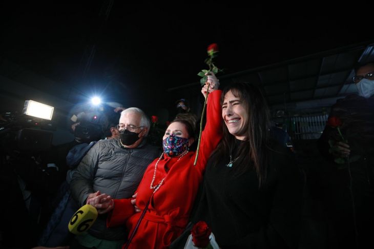 Ataviada con un abrigo rojo, pantalón café, tenis negros y un cubrebocas negro floreado, la ex secretaria de Estado reiteró que es “inocente y va a comprobarlo. Me siento muy contenta de que se hizo justicia y que lo que dije desde el primer día, que yo soy inocente y estoy absolutamente dispuesta a comparecer ante las autoridades competentes. Pero, desde luego, como tenía derechos, como tengo derecho a la libertad, qué les puedo decir: han sido tres años de mucho aprendizaje”.
