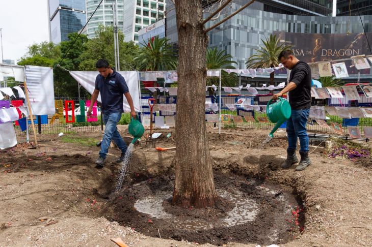 Detalló que a petición de especialistas en vegetación, se colocó una valla alrededor del árbol para su protección y se realiza un análisis de las raíces a solicitud del Servicio Nacional de Sanidad, Inocuidad y Calidad Agroalimentaria.