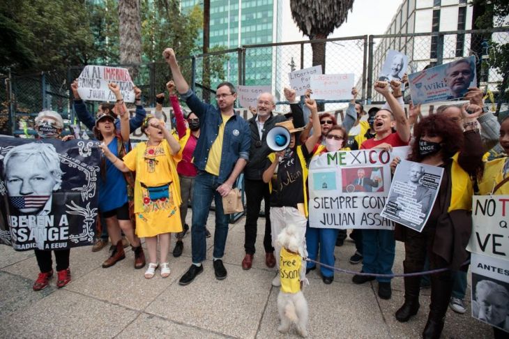 Frente a la embajada estadunidense en la Ciudad de México, luego de un mitin en apoyo de Assange, organizado por el Colectivo #24F Coalición Vida y Libertad, evidenció el doble discurso del gobierno estadunidense, que por una parte se dice defensor de las libertades y por otra busca extraditar a Assange para sentenciarlo a 175 años de cárcel por fundar el portal WikiLeaks.