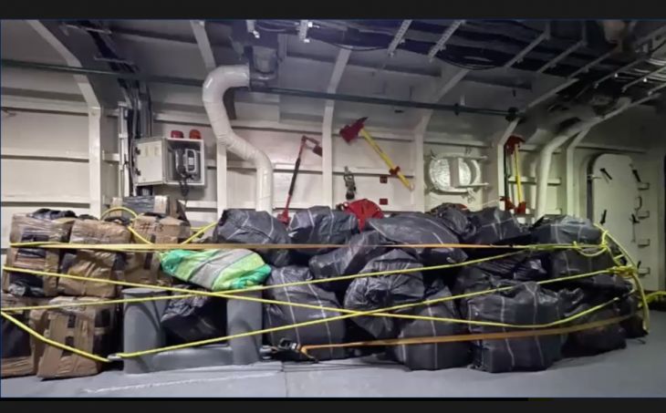 Una tonelada y 700 gramos de cocaína fue asegurada por la Secretaría de Marina (Semar), al interceptar una embarcación menor con dos motores fuera de borda, en las costas de Chiapas, deteniendo a sus ocho tripulantes.