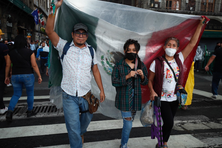 Familias provenientes de Tijuana, Sonora, Chiapas y Campeche; así como capitalinos esperan en los alrededores de la Plaza de Constitución, donde se colocaron filtros para el ingreso, como en el cruce de 20 de Noviembre y Venustiano Carranza.