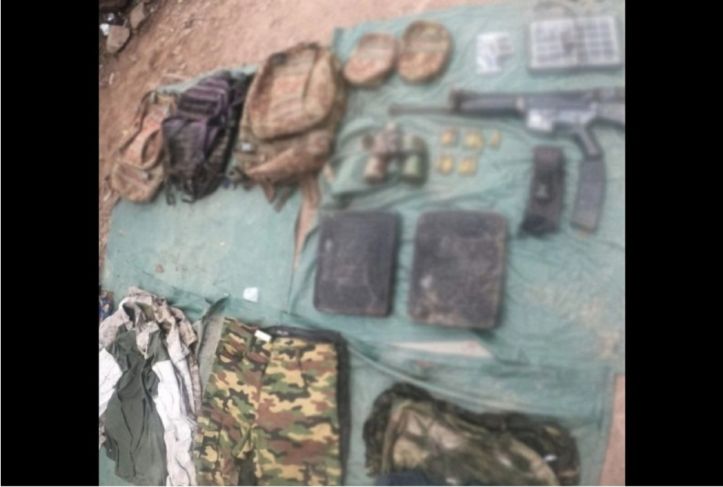 En los narcocampamentos se aseguró un arma larga, dos cargadores, 23 cartuchos útiles y dos placas balísticas, además de cobijas, ropa y casas de campaña, todo ello fue incinerado por los guardias y militares.