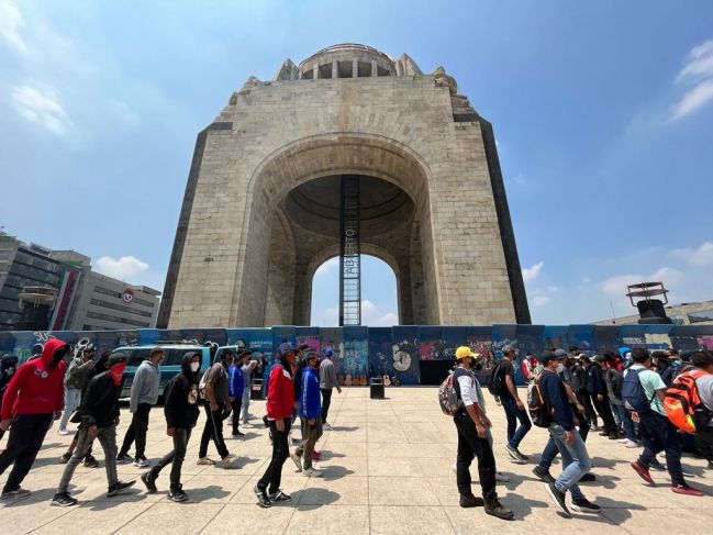 En una manifestación diferente a la que ocurrió en los días anteriores, que terminaron con enfrentamiento entre normalistas y elementos de la policía, esta tarde padres y madres de los 43 estudiantes de Ayotzinapa desaparecidos, así como alumnos de normales rurales realizaron un acto político-cultural en el Monumento a la Revolución en demanda de justicia y presentación con vida de los jóvenes.
