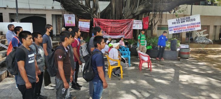 En su intervención en el acto, jóvenes normalistas recalcaron que el Ejército Mexicano tiene que servir a la patria y no a los altos mandos políticos, y lamentaron que son utilizados para reprimir a organizaciones que se manifiestan.