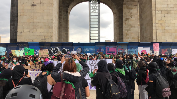 Integrantes de diversas agrupaciones feministas, estudiantes universitarias y un grupo de encapuchados se manifestaron en el Monumento a la Revolución.