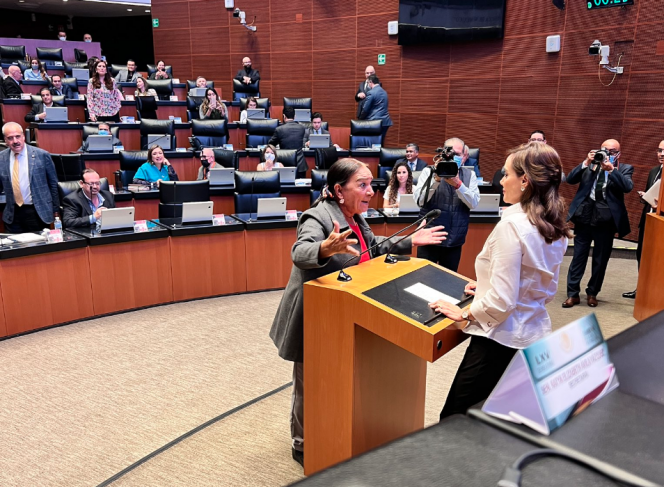 Téllez regresó de nuevo a tribuna para reiterar que los senadores de Morena “son corruptos, hienas y ceros a la izquierda”, pero la morenista Lucía Trasviña se le paró enfrente para refutarla y tuvo que subir Citlalli Hernández a bajarla, para que la situación no llegara a mayores.