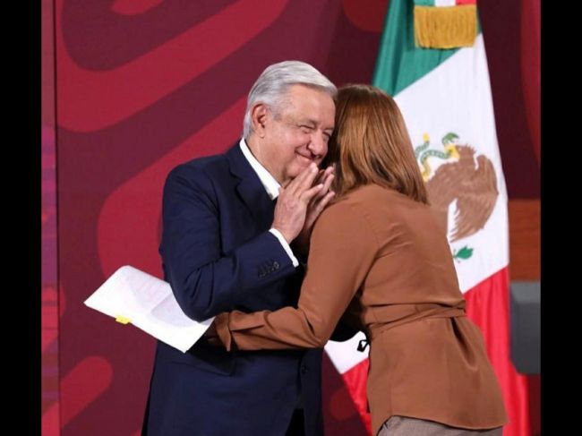 Mientras ella se acercó a abrazar al mandatario, el tabasqueño le respondió con aplausos.