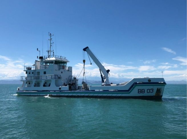 A 14 kilómetros de la costa del puerto, un buque balizador sumergió el último bloque de concreto, que pesa entre dos y tres toneladas, adaptado con un par de ganchos elaborados de varillas de acero, en las que se espera retener las redes utilizadas en la pesca totoaba y donde las vaquitas mueren enredadas.