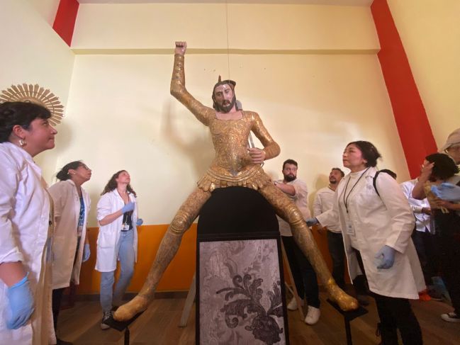 Tras cinco años fuera de su parroquia en la comunidad de Izúcar de Matamoros, Puebla, la escultura de Santiago Apóstol regresó restaurada por personal del Instituto Nacional de Antropología e Historia (INAH).