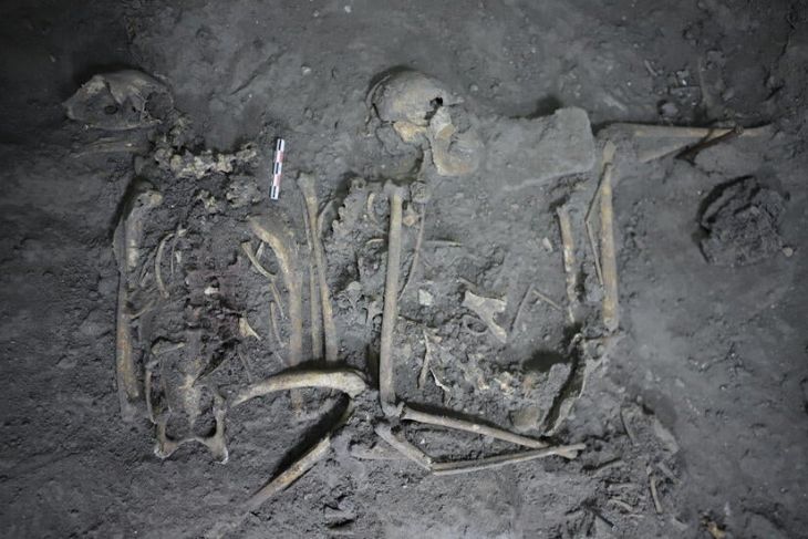 Sus restos óseos se encontraron junto a un águila real y varias serpientes de cascabel, rodeados de artefactos únicos, como finas figurillas de piedra verde hechas de jade del valle de Motagua en Guatemala, abundantes artefactos de concha/caracol y lujosos objetos de obsidiana, como navajas y puntas de proyectiles. Esto es consistente con la evidencia del sacrificio vivo de animales simbólicamente potentes que participan en los rituales estatales observados en los escondites dedicatorios de las Pirámides de la Luna y el Sol, afirmaron los investigadores en el artículo.