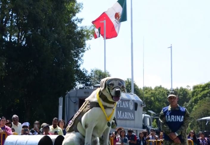 “A partir de hoy, nuestra unidad canina cuando vaya a zonas de desastre van a llevar la foto de Frida porque eso les va dar identidad, coraje, valor para ser como ella”, anunció el almirante.