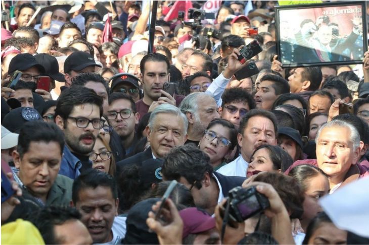 Del Ángel de la Independencia a la avenida Insurgentes, algo menos de un kilómetro -sobre Reforma-, el grupo que encabeza el mandatario se convirtió en una enorme mancha humana que avanzó ese trecho en tres horas.