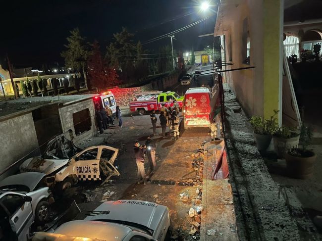 Un muerto, 26 personas lesionadas por quemaduras, tres de ellas de gravedad, dos vehículos destrozados y varias viviendas dañadas provocó una explosión de juegos pirotécnicos que serían utilizados para los festejos de la Virgen de Guadalupe en la comunidad de San Felipe Teotitlán, en el municipio de Nopaltepec, informó la Secretaría de Seguridad del Estado de México.