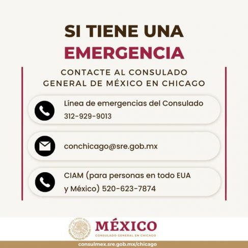 En un mensaje en las redes sociales dijo que en caso de necesitar atención consular se puede llamar al 312-929-9013.