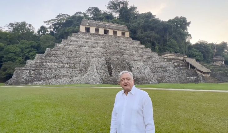 En un video grabado en la zona arqueológica de Palenque, el mandatario envió un mensaje de Año Nuevo en el que deseo “en lo personal que gocemos de salud y seamos muy felices”.