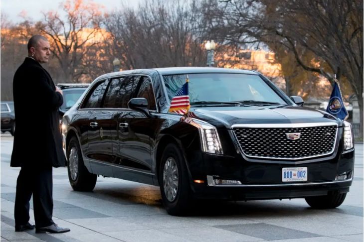 El Cadillac hecho a la medida producido por General Motors Co. GM.N apareció por primera vez en público en 2018. Expertos dicen que la limusina presidencial tiene llantas antipinchazos con las que se pueden avanzar hasta 100 kilómetros tras ser desinfladas, vidrios a prueba de balas y un interior completamente sellado para protegerse de un ataque químico, entre muchas otras características de seguridad de alta tecnología como visión nocturna, disipador de gases lacrimógenos y cuenta con un recubrimiento de espuma especial anti incendios. También cuenta con un amplio equipo de comunicaciones electrónicas y transporta una reserva de sangre del tipo del presidente en funciones para transfusiones de emergencia.