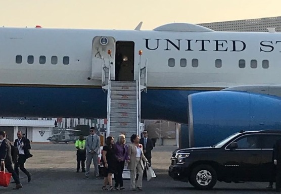 La primera dama de los Estados Unidos arribó a la capital del país procedente de Washington DC. Bordo de un Boeing 758 VVC 32A de la fuerza aérea de ese país.