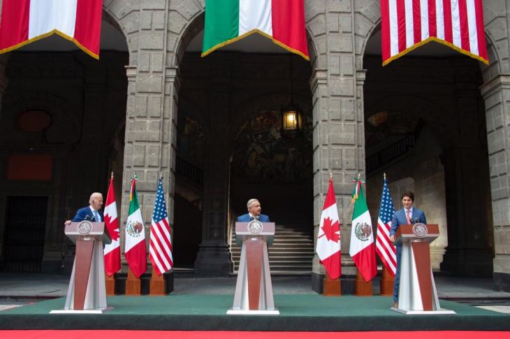 En su oportunidad, Biden destacó que América del Norte enfrenta grandes desafíos para lograr una economía resiliente que permita renovar los mecanismos de cooperación, sobre la base de una actuación de conjunto como vecinos y amigos. La prioridad es lograr que en el siglo XXI Norteamérica sea la región más competitiva, mediante el fortalecimiento de la integración económica que genere mayores empleos en nuestros países, lo cual significa consolidar las cadenas de suministro en esta región, señaló.