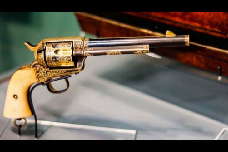 El gobierno federal resguarda el arma que está acompañada de dos cartuchos de bala percutidos y una caja de madera, nácar y plata que sirve como funda.