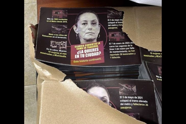 Se trata de 13 paquetes encontrados por la Secretaría de la Contraloría General, con folletos y mantas con las leyendas: “Le toca a Claudia, pero con gusto atendemos. Sandra Cuevas, alcaldesa de Cuauhtémoc” y “Claudia convirtió la CDMX en tragedia. ¿La quieres en tu ciudad?”, entre otros señalamientos contra la figura de la jefa de Gobierno.