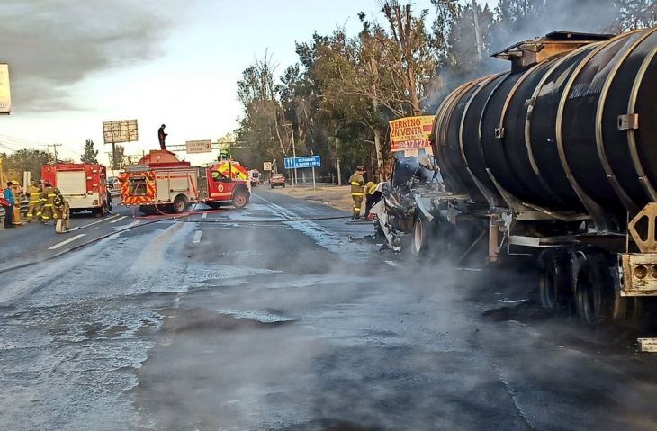Una pipa con combustible se quemó está mañana en la carretera federal Silao-León, a la altura del entronque de Comanjilla, informó Protección Civil del Estado.