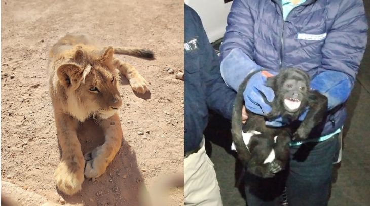 Un mono aullador de aproximadamente seis meses y un león de nueve meses de edad fueron rescatados en Aguascalientes por personal de la Procuraduría Estatal de Protección al Ambiente, (Proespa) y la Procuraduría Federal de Protección al Ambiente (Profepa).