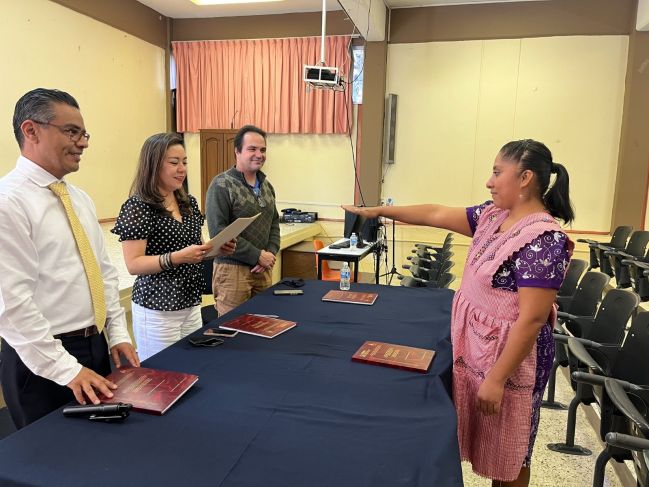 Tras culminar sus estudios dentro de la Universidad Pedagógica de Morelos, Dina Adriana Cardoso Salvador presentó una tesis escrita en lengua náhuatl para obtener su título como licenciada en Educación Primaria para el Medio Indígena.